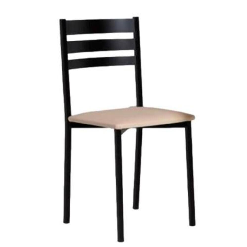 Dale un toque moderno y elegante a tu cocina con esta silla metálica en color negro, diseñada para ofrecer resistencia, estabilidad y estilo. Su estructura robusta combina perfectamente con un asiento tapizado en piel sintética color beige, que aporta comodidad y un toque cálido al ambiente.