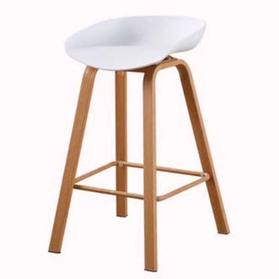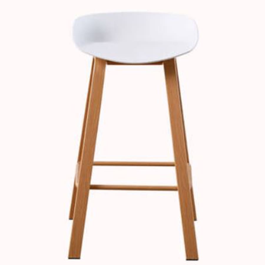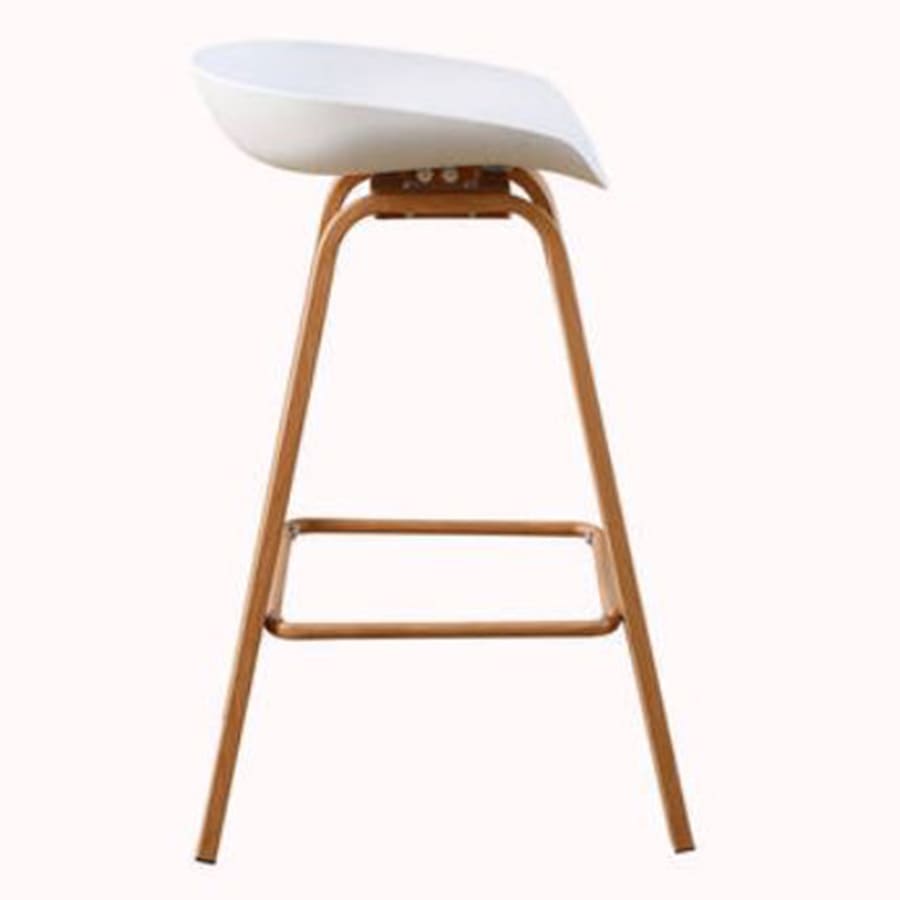 Taburete con asiento de polipropileno y patas metálicas efecto madera. Altura del asiento: 67cm.