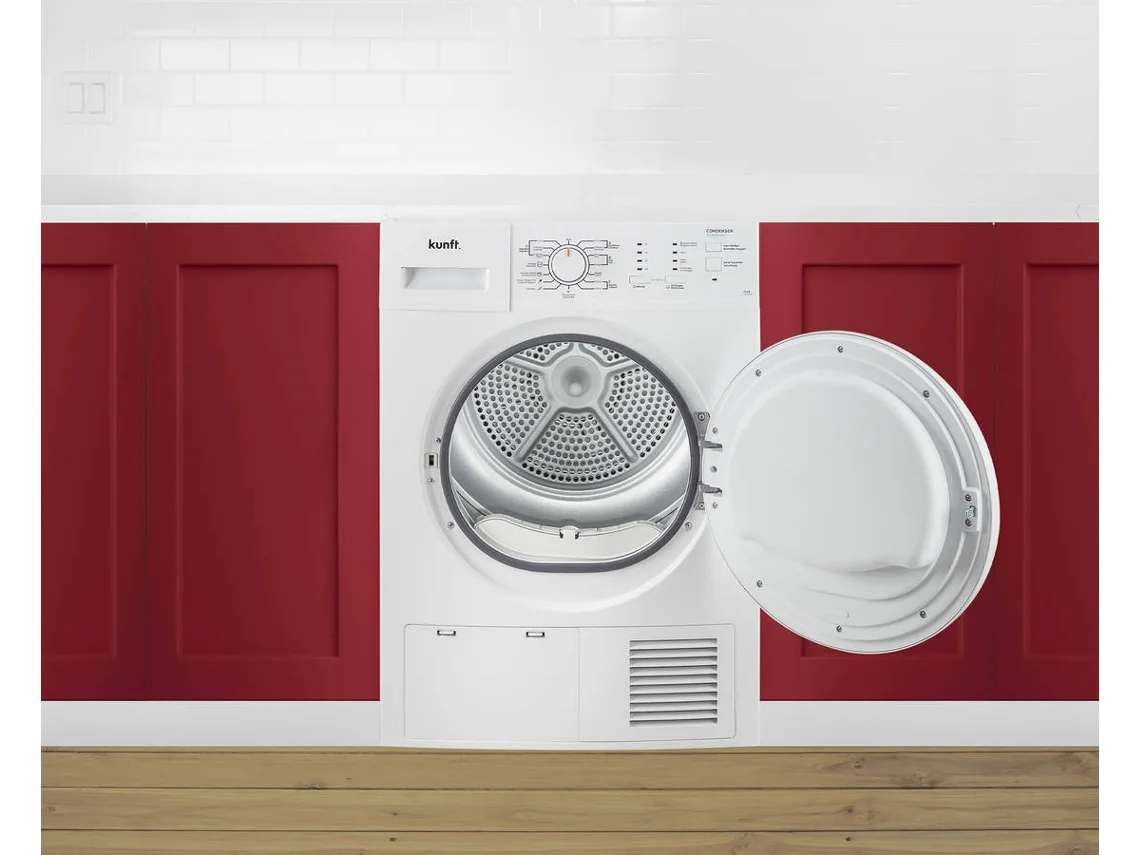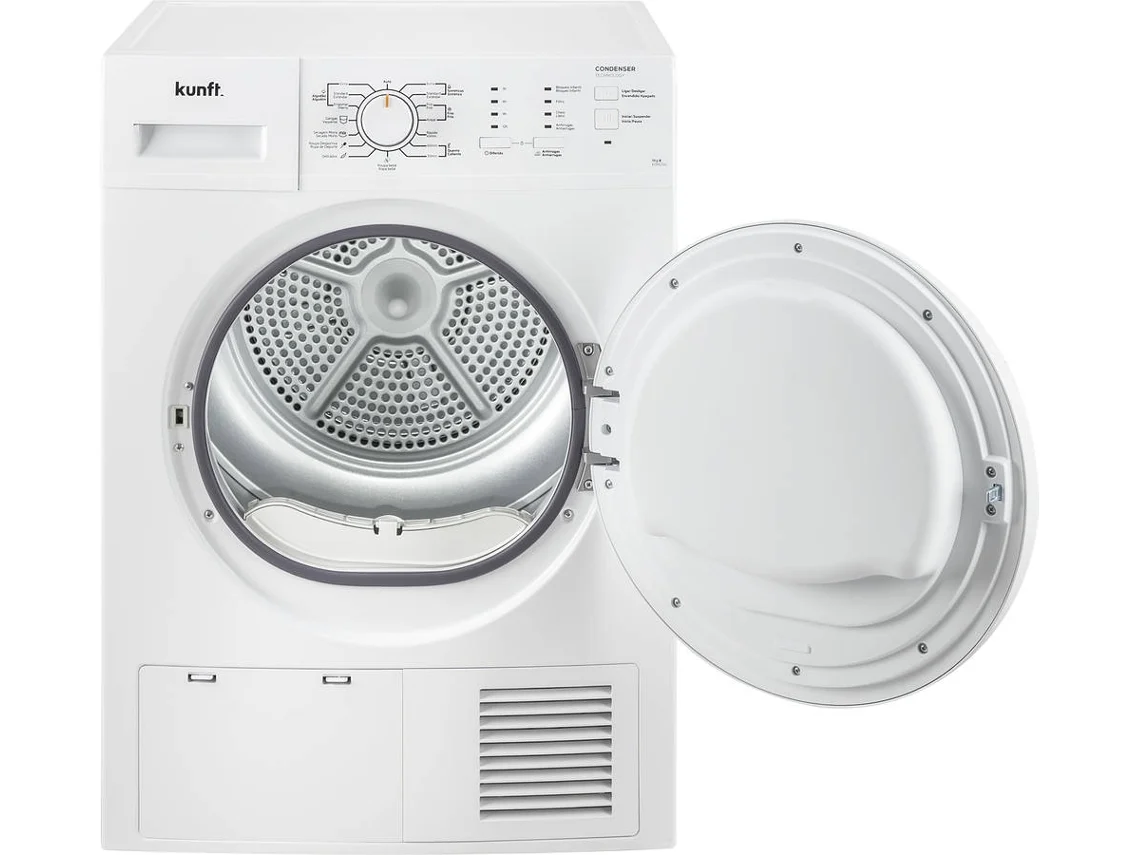 La secadoraKDM2740N de Kunft es la solución ideal para quienes buscan eficiencia yrendimiento en el hogar. Con una capacidad de 8 kg, es perfecta para satisfacerlas necesidades de una familia promedio, permitiendo secar grandes cargas deropa de manera rápida y efectiva. Su sistema de secado por condensación aseguraque el proceso se realice de manera eficiente, sin necesidad de una salida deaire externa, lo que la hace ideal para viviendas sin instalación de conductos