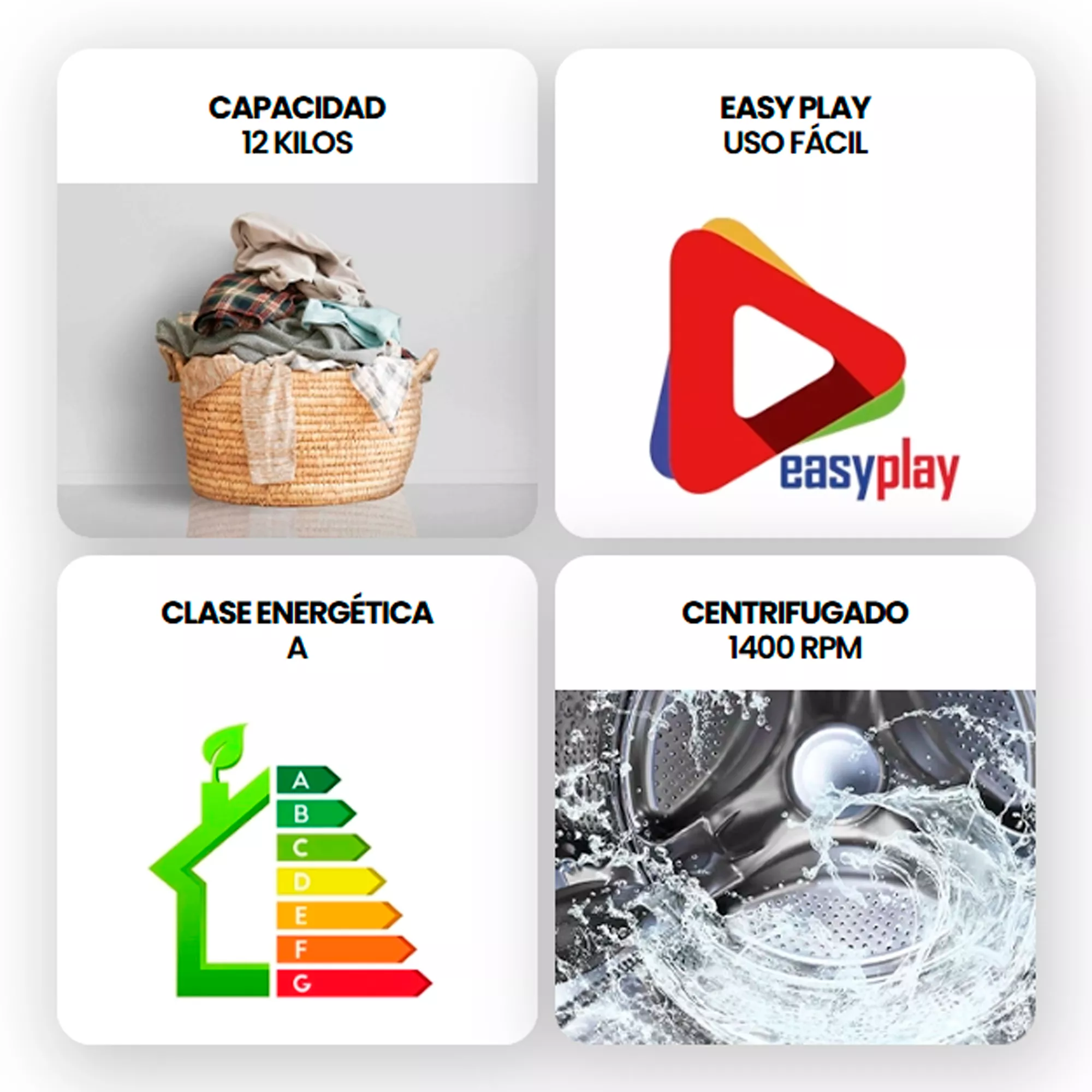 Lavadora Infiniton WM-G124AWL 12kg 1400rpm A vapor care 14 programas