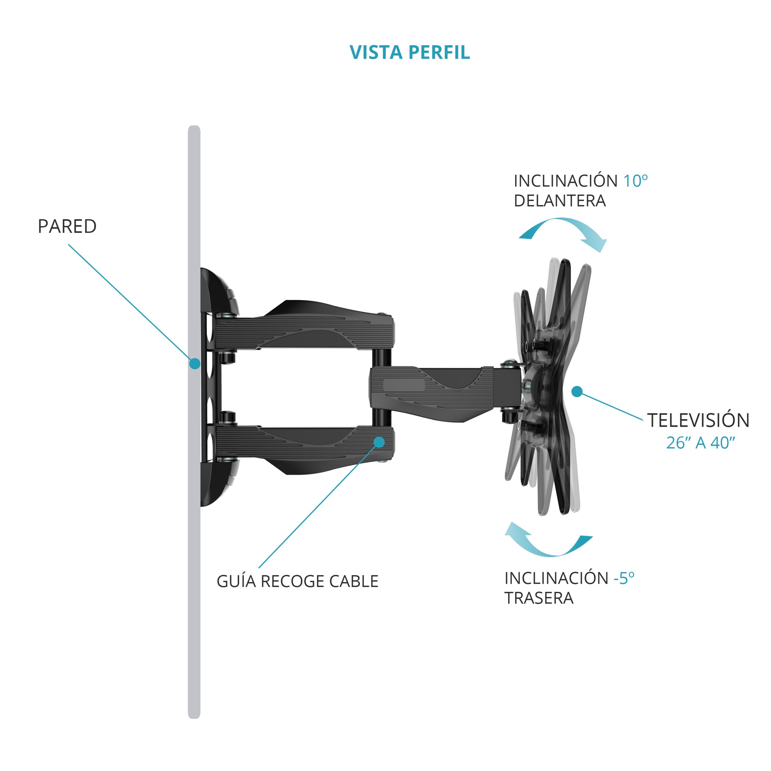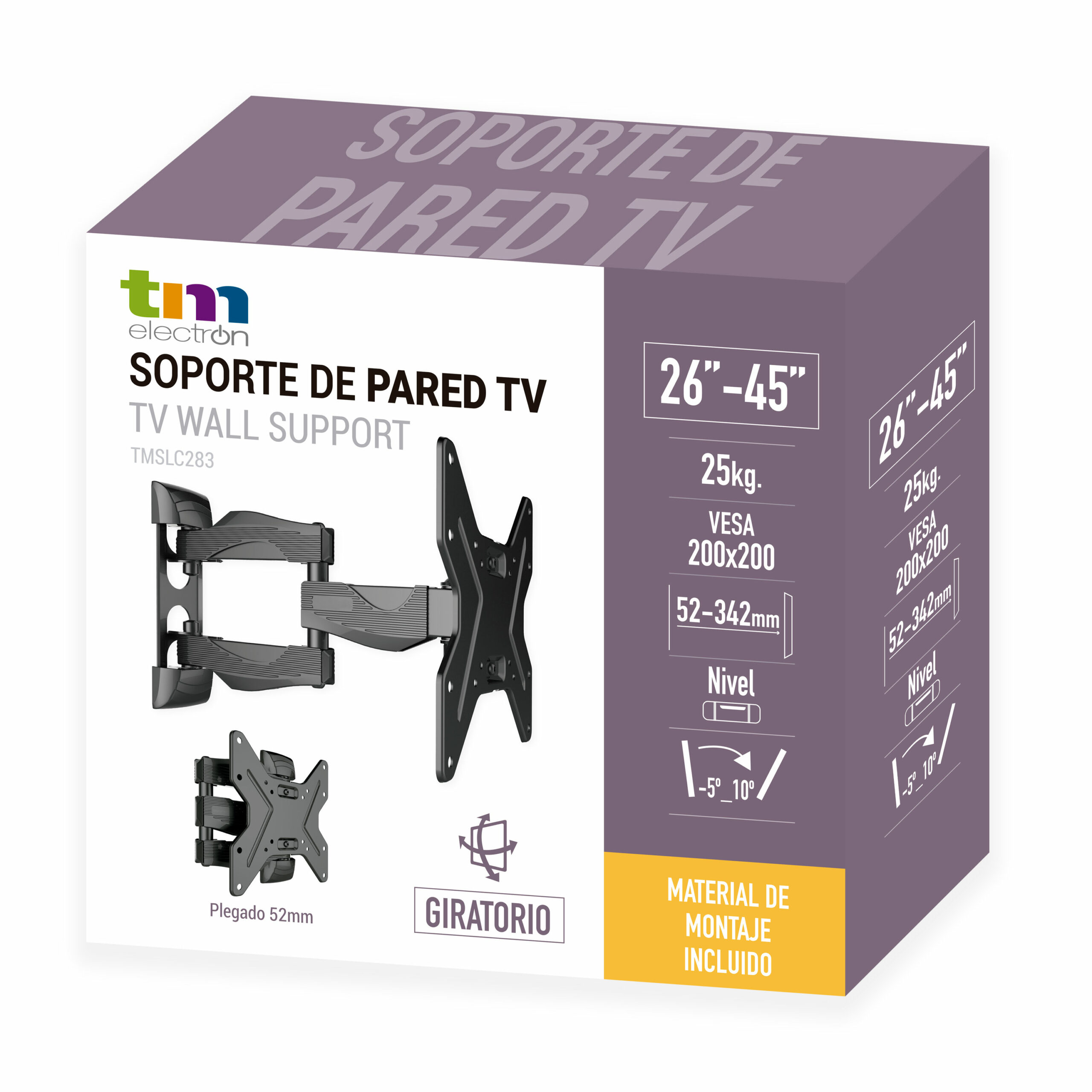 - Incluye todos los accesorios de montaje que necesitas para dejar el soporte colocado y funcionando desde el primer día.