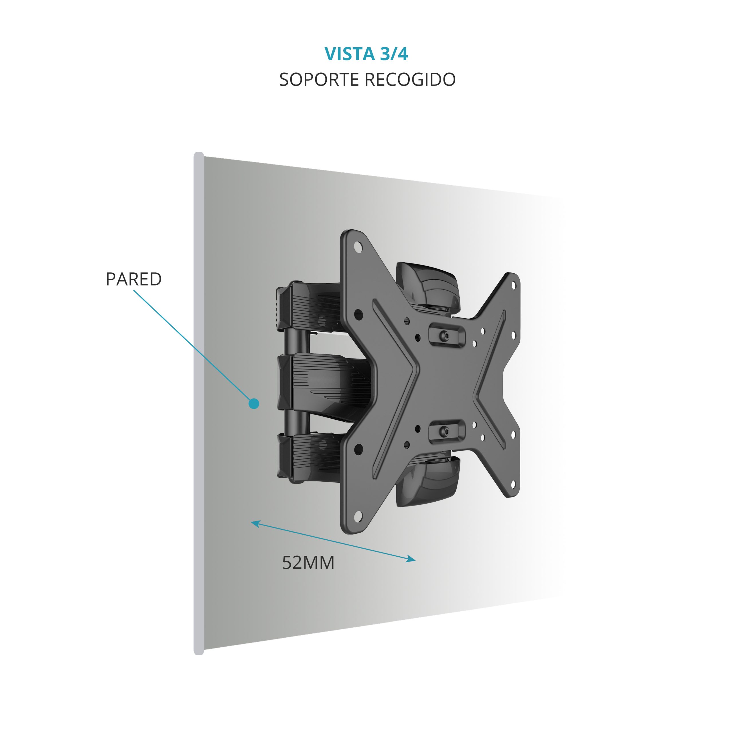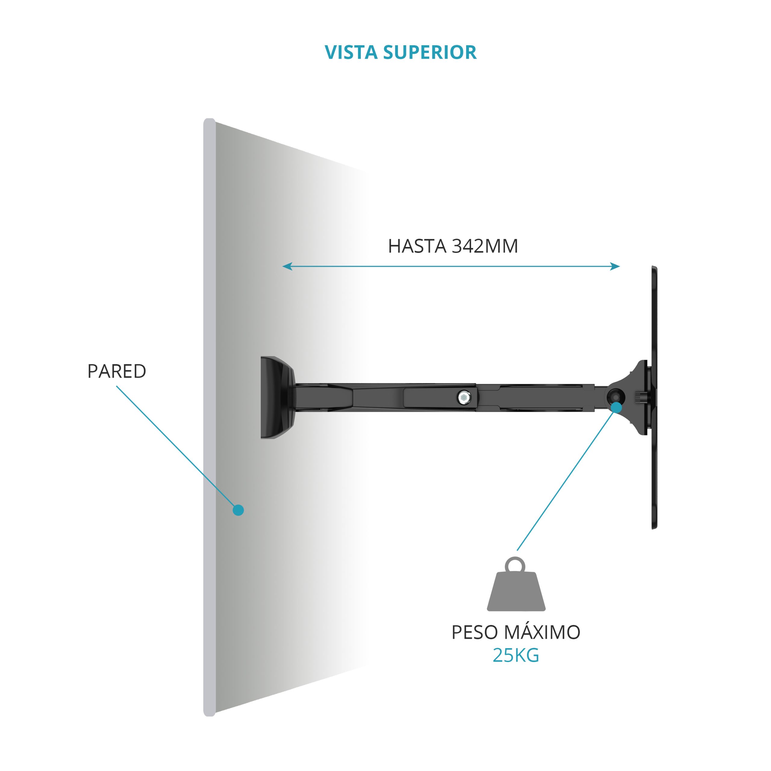- Deja una distancia a la pared de 52mm (plegado) hasta 342mm (desplegado).
